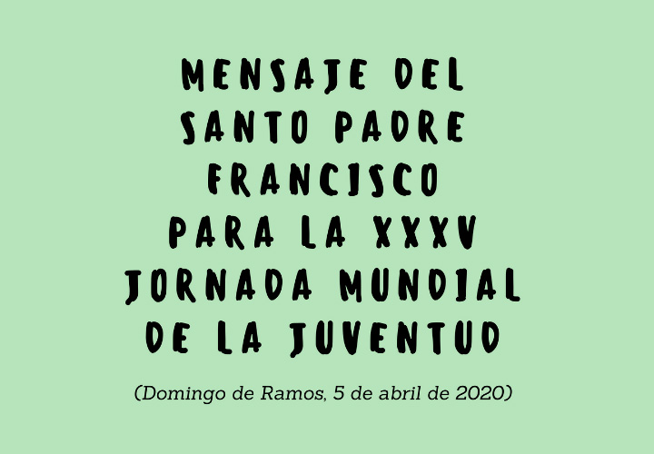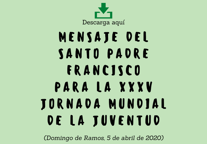 Aquí tienes el mensaje del Papa Francisco con motivo de la XXXV Jornada Mundial de la Juventud que se celebra el 5 de abril en Roma (Domingo de Ramos). También te dejamos unas preguntas para que puedas trabajar a nivel personal o con otros jóvenes de modo virtual ¡lo dejamos a tu elección!