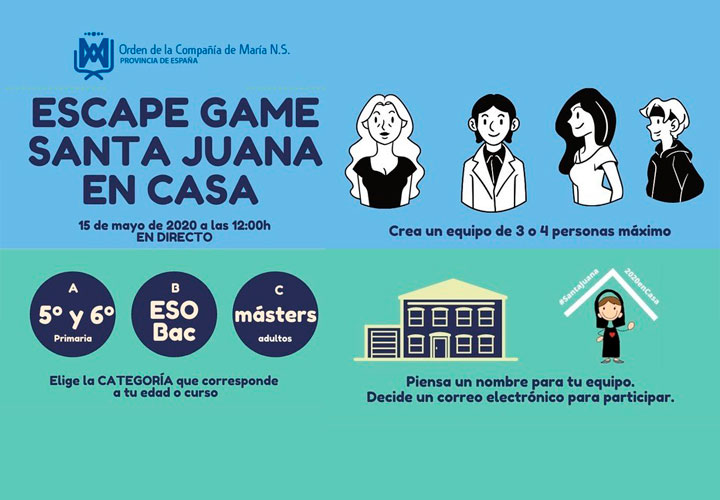 La congregación de la Compañía de María celebra el próximo 15 de mayo la fiesta de su fundadora por lo que se unirán a todas las Plataformas educativas, comunidades religiosas, Red Laical y jóvenes antiguos alumnos para celebrar la Eucaristía virtual y un Escape Game todos juntos.