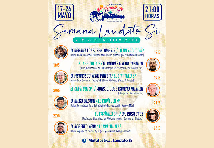 Con motivo del V aniversario de la encíclica Laudato Si, la Asociación Laudato Si, ha decidido unirse a la «Semana Laudato Si» del 17 al 24 de mayo, organizada por el Dicasterio para el servicio del desarrollo humano integral. Esta semana constará de una serie de charlas donde profundizarán en los capítulos de la encíclica. Los ponentes que participarán serán: