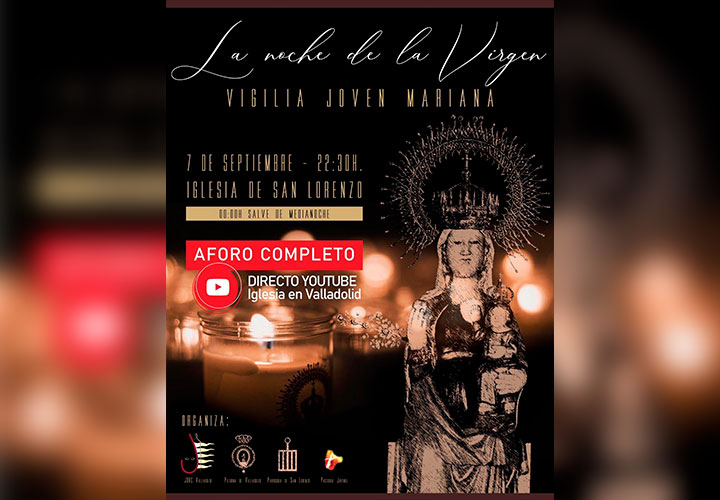 Desde el movimiento de Juventud Obrera Cristiana (JOC) de Valladolid conjuntamente con la Delegación de Pastoral Juvenil, organizan el próximo 7 de septiembre a las 22.30h una Vigilia Joven Mariana en la Iglesia de San Lorenzo de Valladolid. También se retransmitirá en directo por YouTube.