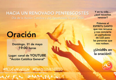 La Acción Católica General con motivo de la solemnidad de Pentecostés, organiza una vigilia de oración el próximo sábado 30 de mayo a las 19.00h a través de su canal de Youtube