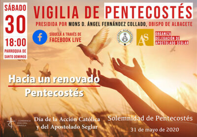 Con motivo de la solemnidad de Pentecostés, delegación de Pastoral Juvenil de Ibiza, ha organizado una vigilia de oración el sábado 30 de mayo a las 20.00h en la Parroquia Sagrada Familia de Can Bonet y será retransmitida a través de su página en Facebook.