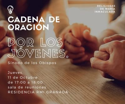 Las Religiosas de María Inmaculada con sus más de 30 residencias universitarias se unen a la Cadena de Oración convocada por el Departamento de Pastoral de Juventud con motivo del Sínodo de los Obispos sobre "Los jóvenes, la fe y el discernimiento vocacional".